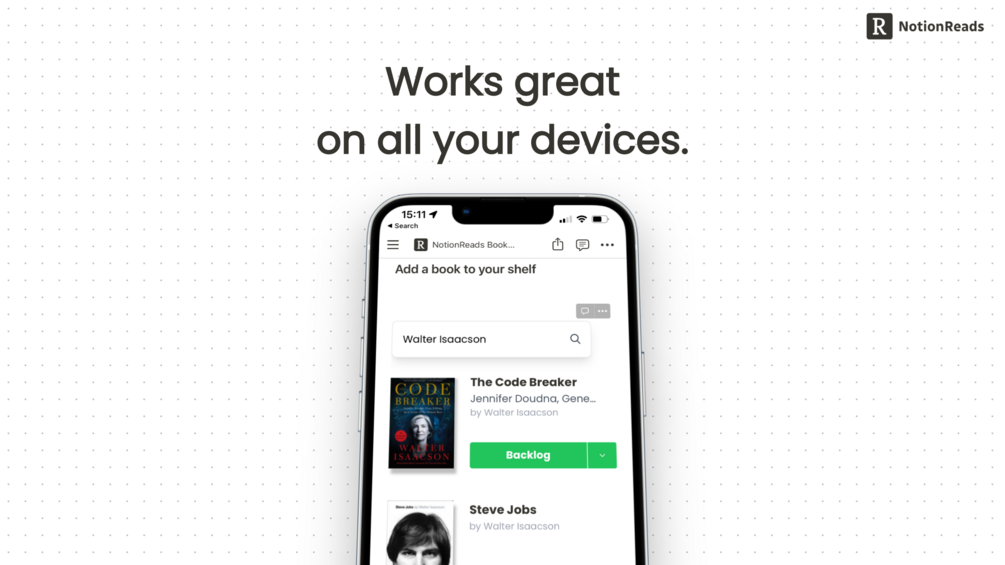 Whether you prefer to work with Notion on your phone, your tablet or in the web app, your bookshelves will look great on any device.