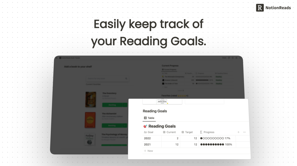 NotionReads lets you manage and track all of your books, reading lists, and notes.
